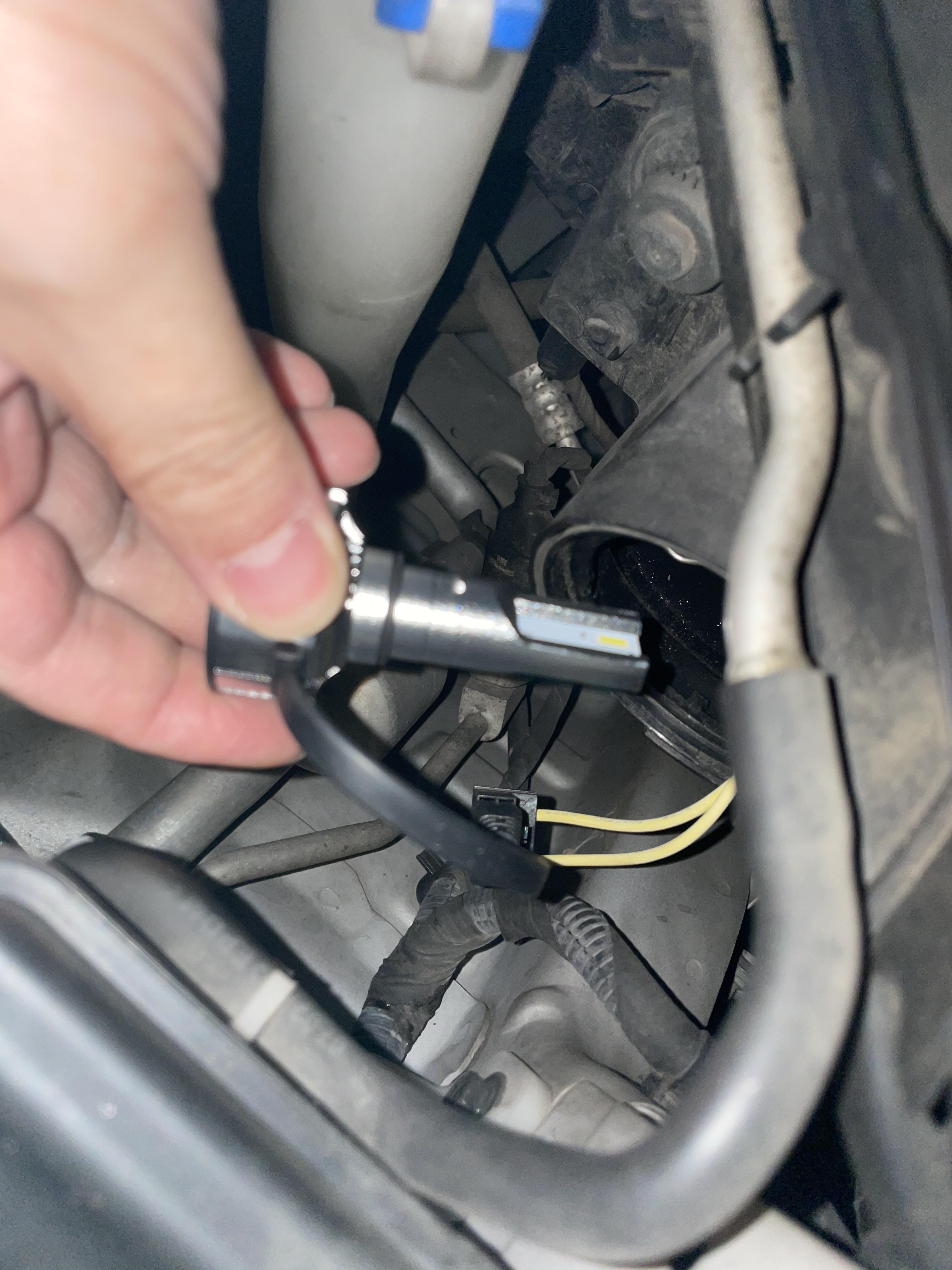 먼저 배선을 연결하고 전조등을 켜서 제대로 들어오는지 확인한다. 반대로 끼우면 불이 들어오지 않는다.