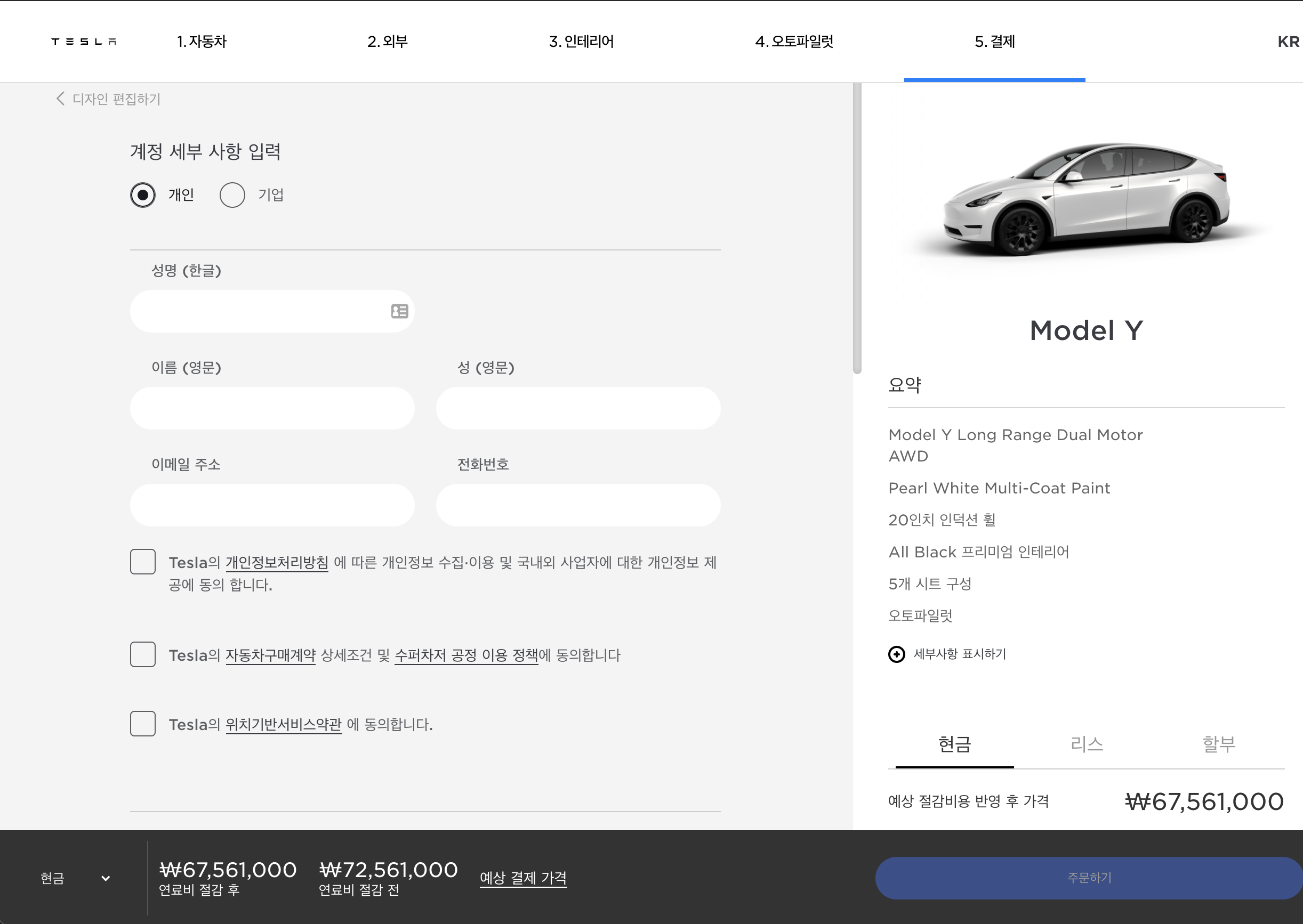 테슬라는 주문을 온라인으로 받는다. (물론 스토어에서 도움 받아가며 할 수 있지만, 온라인이 기본)