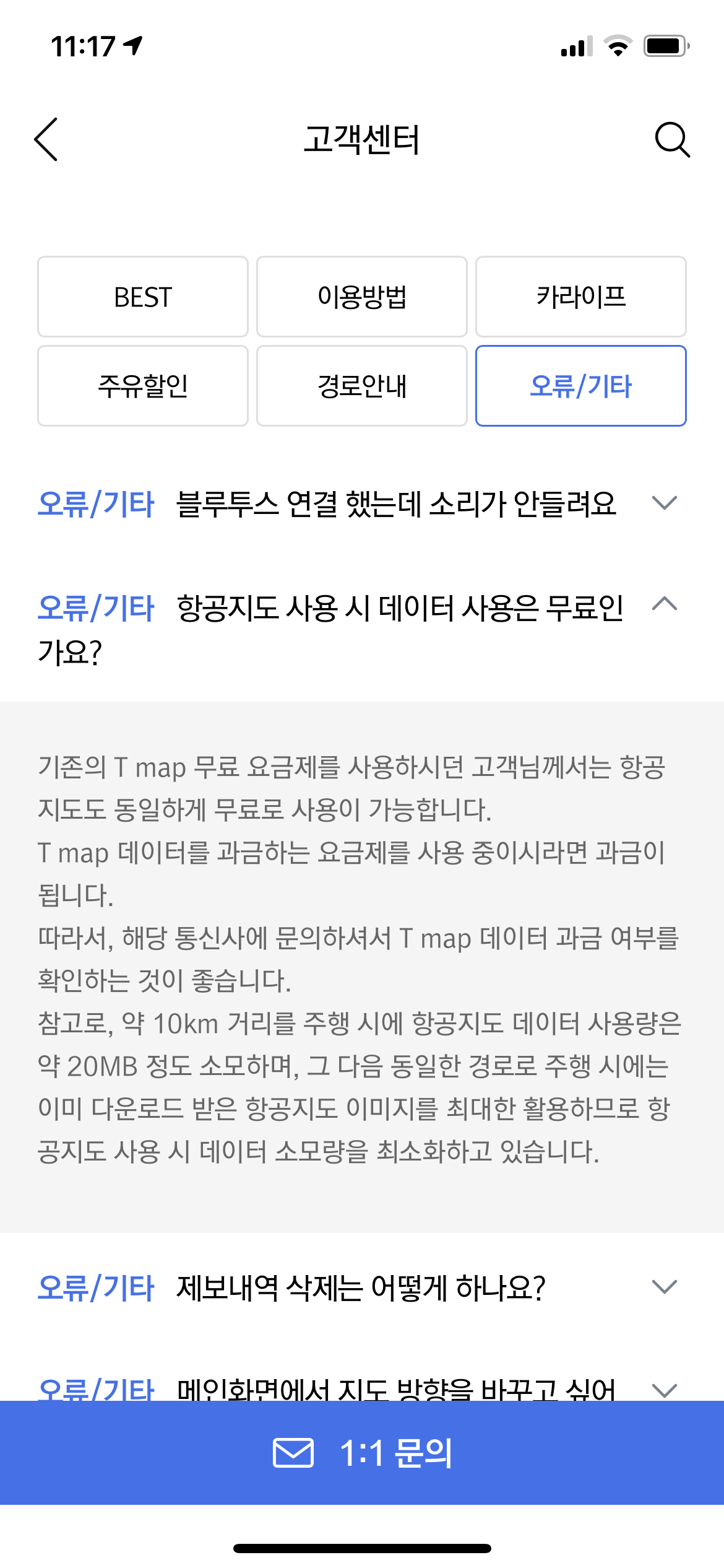 무제한 데이터 이용 고객이 아닐 경우, 항공지도를 이용하고 주행거리가 길 경우 데이터 부족 문제가 나타날 수 있습니다.