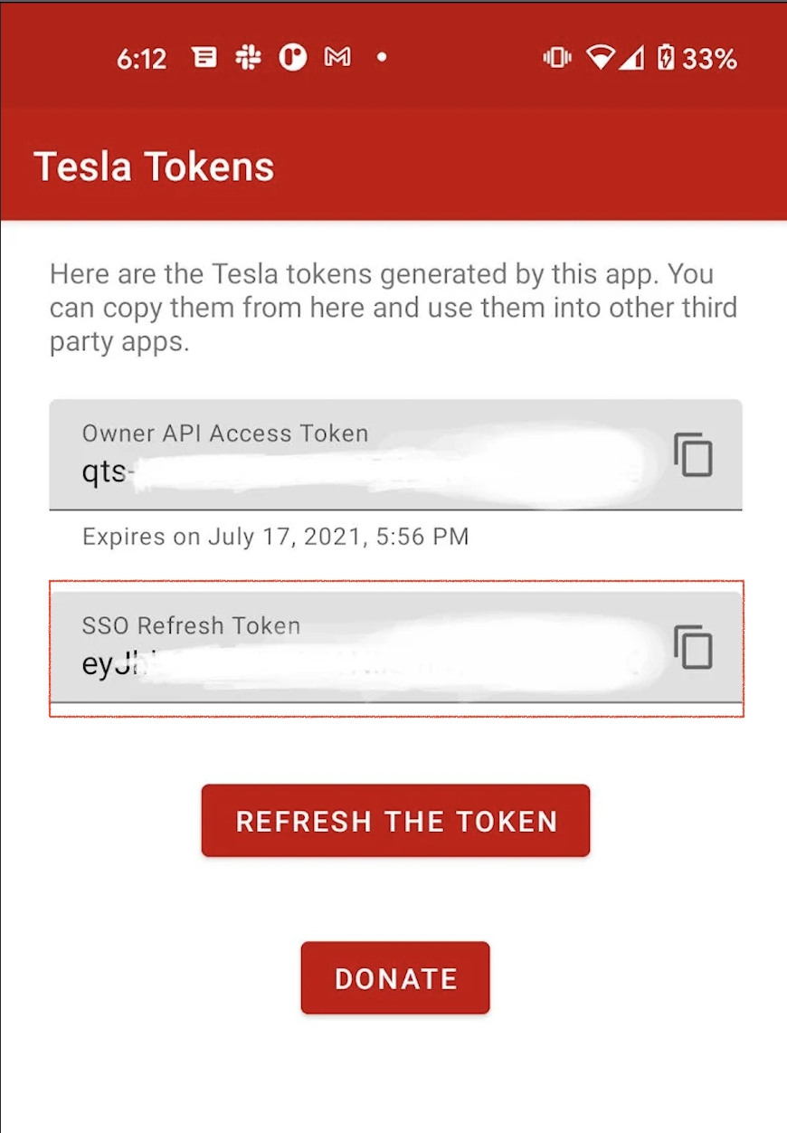 Tesla 앱이 설치된 경우 토큰 발급은 필요없다.