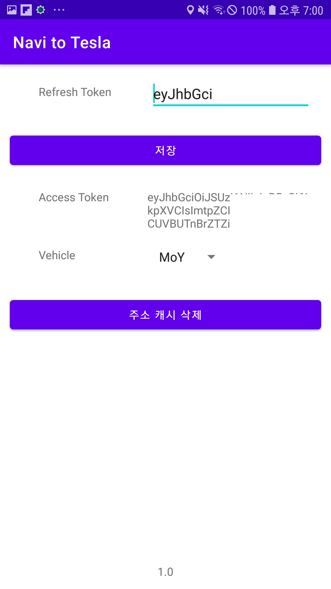위 사진과 같이 Refresh Token을 입력 후 저장 버튼을 눌렀을 때 하단에 Access Token과 차량 명이 보이면 성공이다.