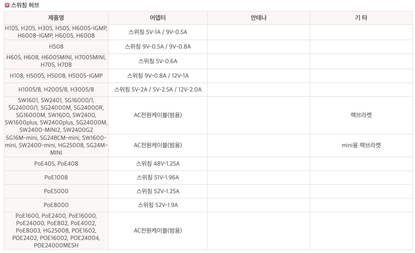 POE 스위치나 대형 스위치가 아닌 일반 가정용 스위치는 5v, 9v, 일부 12v가 혼합되어 있다.